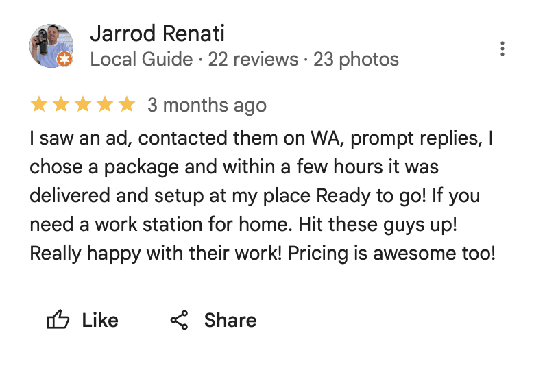 "easy communication, quote sent, accepted, asked when, delivered on the same day. 5/5 service!!"